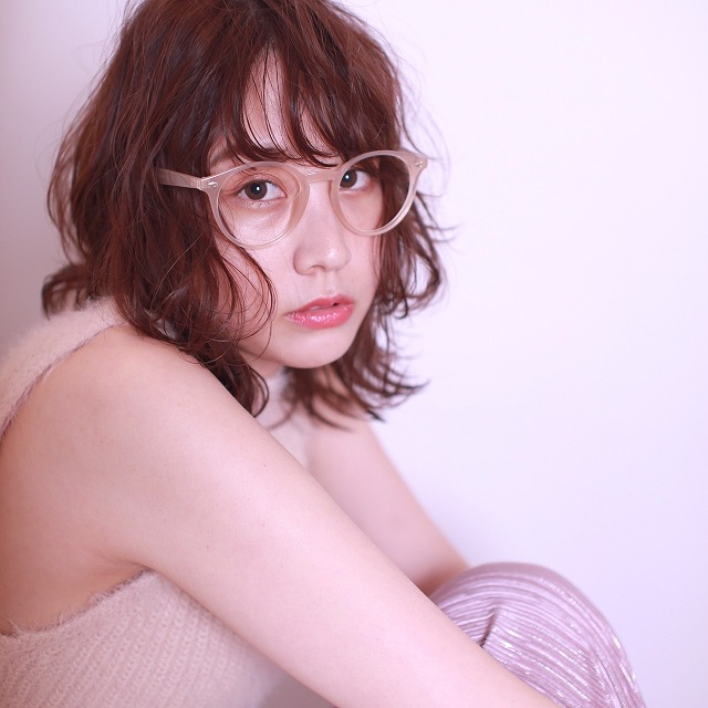 上目遣いが、あざといですね~!! 顔周りに動くウルフの毛が、 メガネとの相性抜群でかわいいです(^0^)